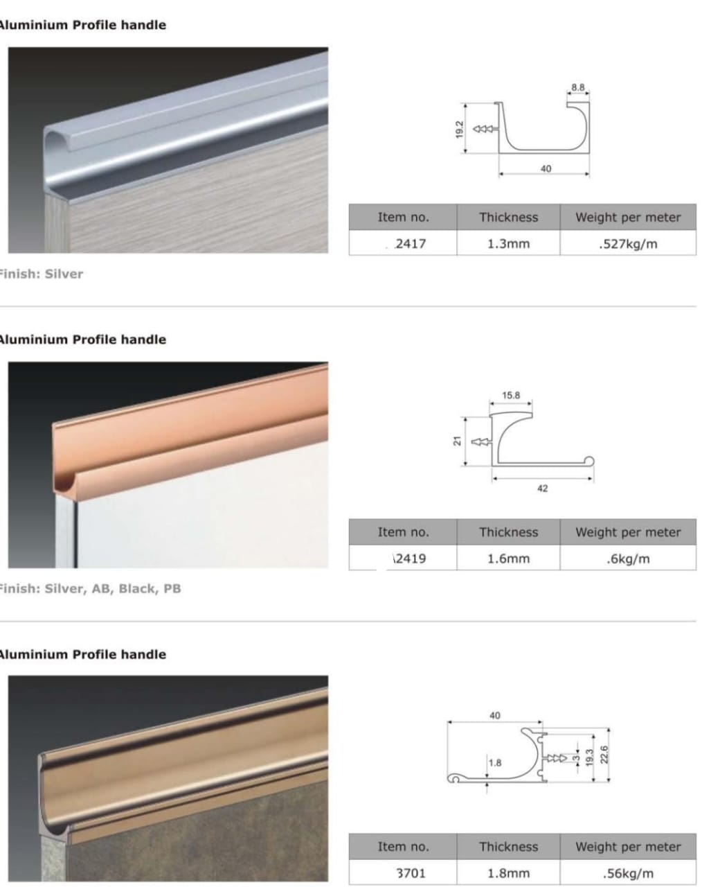 High quality aluminum profiles & Cabinet Hinges All types