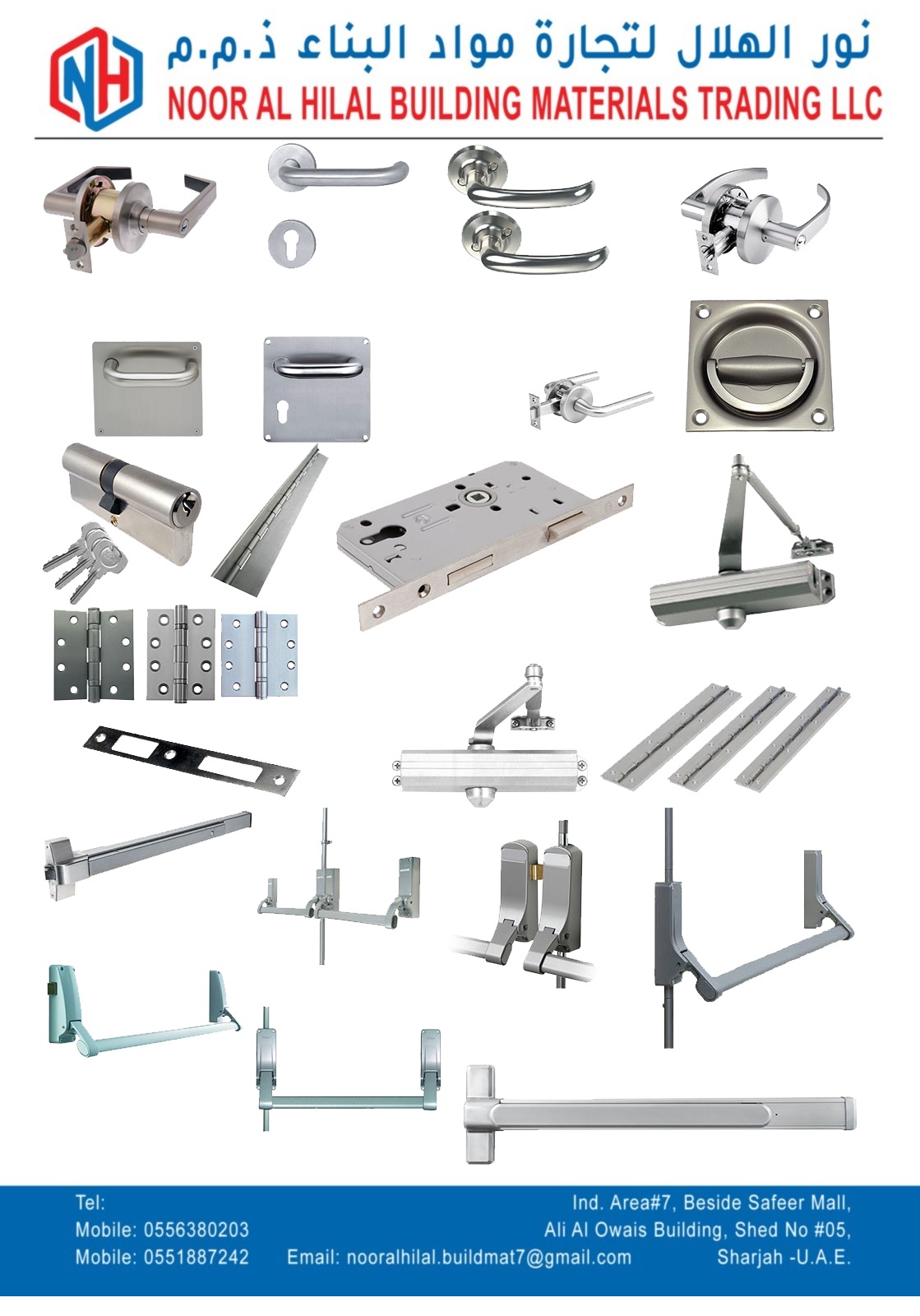 NOOR AL HILAL BUILDING MATERIALS TRADING LLC is a leading supplier of hardware, building materials, tools, electrical hardware, and glass & aluminum accessories based in Sharjah, UAE.